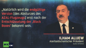 Alijew: In Kasachstan abgestürztes Flugzeug durch Beschuss vom Boden beschädigt