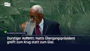 Durstiger Auftritt: Haitis Übergangspräsident greift zum Krug statt zum Glas