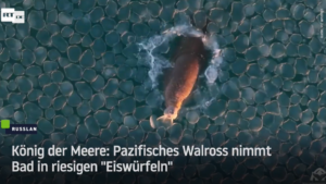 König der Meere: Pazifisches Walross nimmt Bad in riesigen “Eiswürfeln”