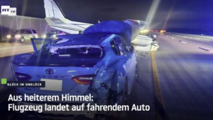 Aus heiterem Himmel: Flugzeug landet auf fahrendem Auto