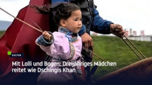 Dschingis Khans Erbin? Dreijähriges Mädchen reitet mit Lolli und Bogen