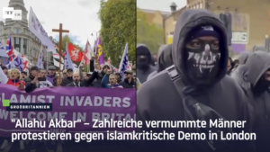“Allahu Akbar” â Zahlreiche vermummte MĂ€nner protestieren gegen islamkritische Demo in London 27. Oktober 2025