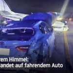 Aus heiterem Himmel: Flugzeug landet auf fahrendem Auto