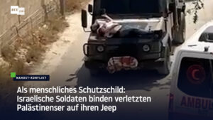 Als menschliches Schutzschild: Israelische Soldaten binden verletzten Palästinenser auf ihren Jeep 26. Juni 2024