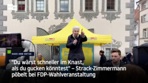 “Du wärst schneller im Knast, als du gucken könntest” – Strack-Zimmermann pöbelt bei FDP-Wahlveranstaltung 18. April 2024